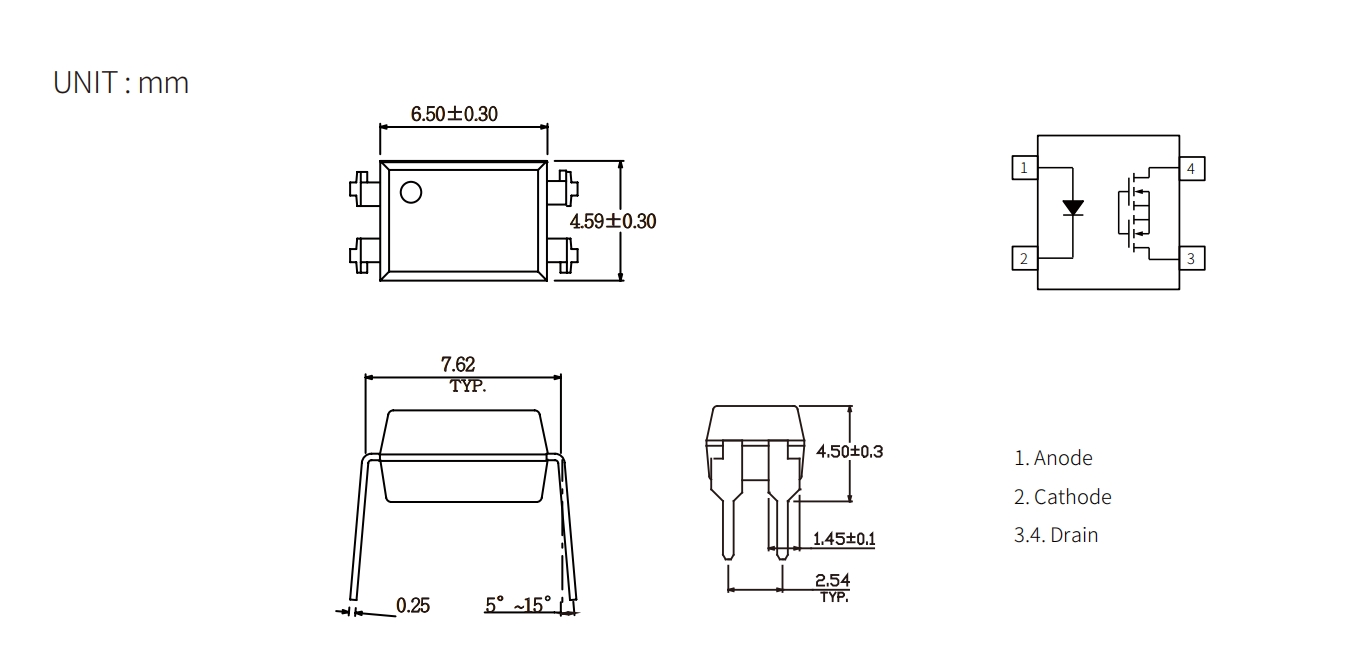 | KL406A | DIP4 | 6.5x4.58x3.5 | 60 | 550 | 0.7 | 5 | -40 | +85 | 5000 |